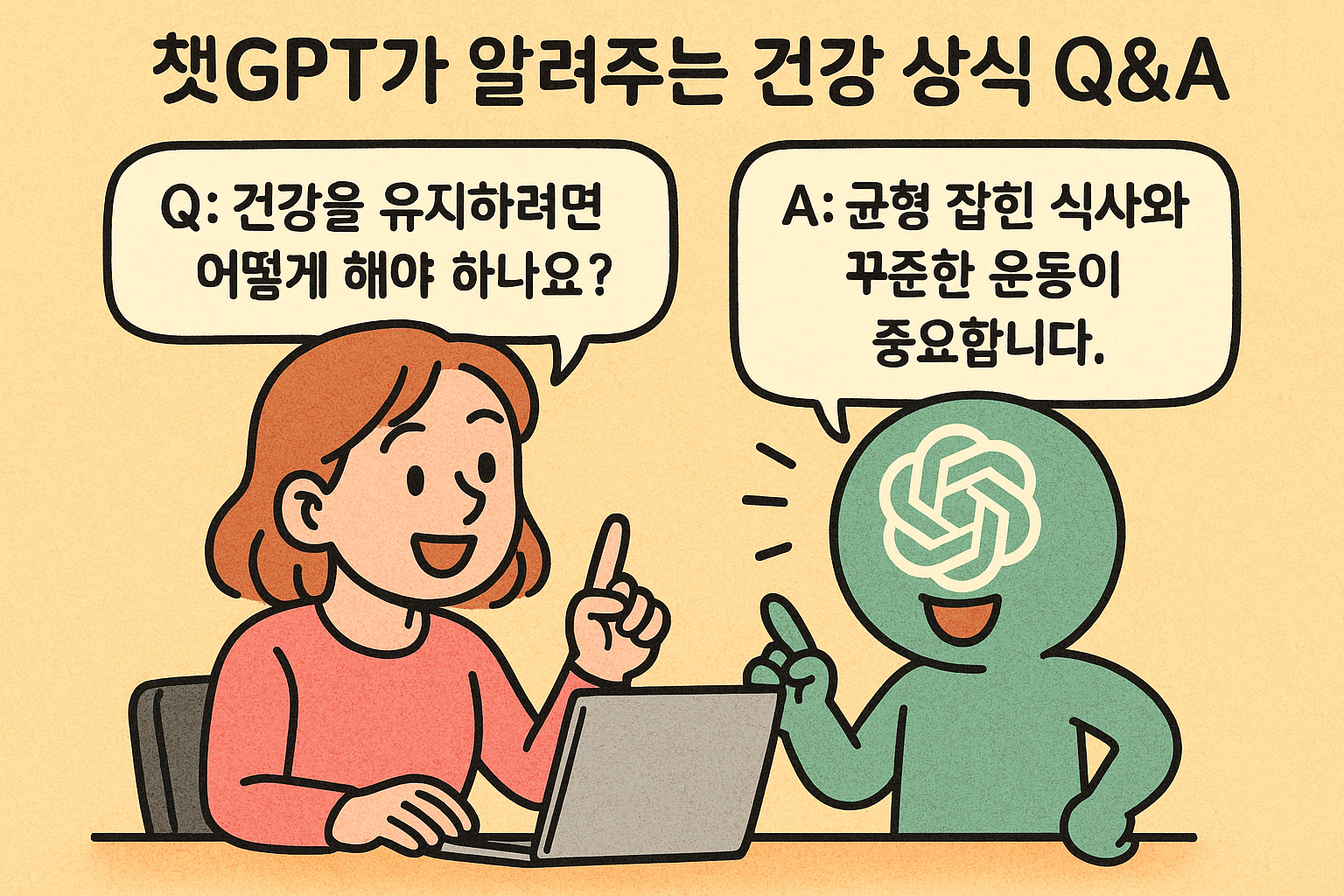 챗GPT가 알려주는 건강 상식 Q&A! 감기 예방, 수면 루틴, 식단 구성 등 유용한 건강 팁을 챗GPT와 함께 스마트하게 알아보세요.